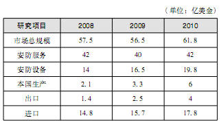 到2010年末,俄羅斯安防市場(chǎng)總規(guī)模達(dá)到61.8億美金,以下為2008~2010年末相關(guān)數(shù)據(jù):