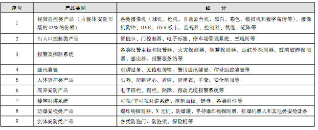 (1)商業(yè)安全類:CCTV及監(jiān)視系統(tǒng)、可視對(duì)講、電視監(jiān)控、防盜報(bào)警、身份識(shí)別、認(rèn)證系統(tǒng),金融系統(tǒng)保安防范產(chǎn)品;